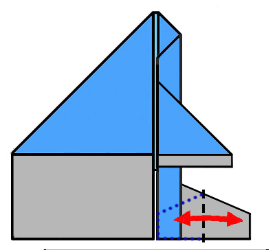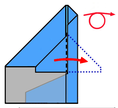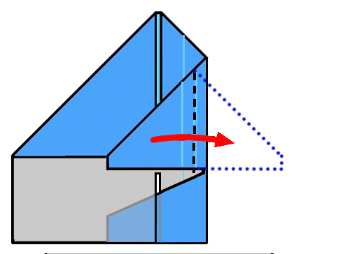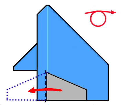 | Step 9 Fold and unfold the tail fin as shown for the later step. Repeat steps 4 thru 7 for left side wing. |