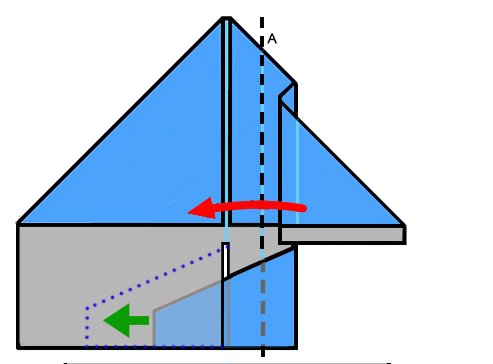 Step 6 Fold the right side along line A while you pull the tail fin toward left. |