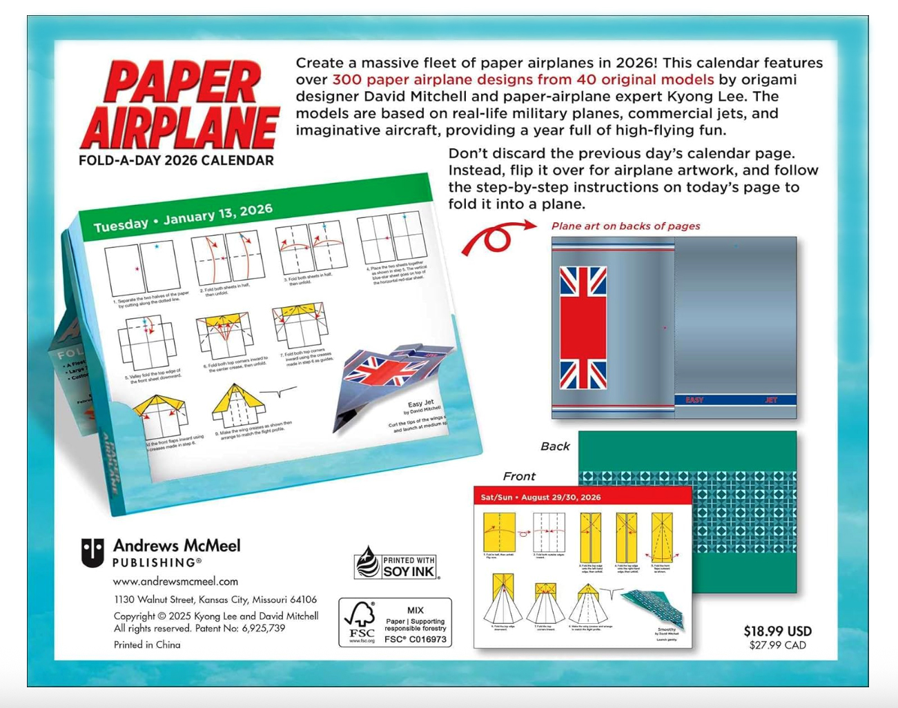 For more informations, you may visit Andrews McMeel Publishing's website: https://publishing.andrewsmcmeel.com/calendar/paper-airplane-2026-fold-a-day-calendar/ |