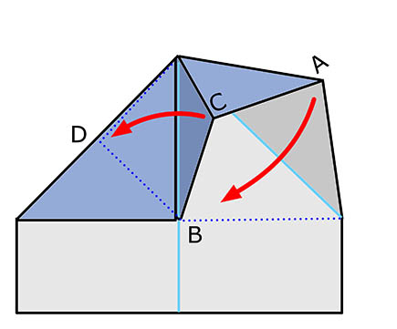 Step 7 Flip the flap to the left side (C meets D) and flatten point A to point B.