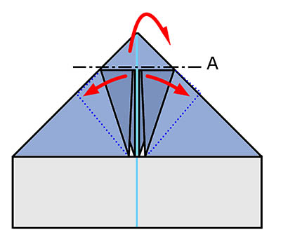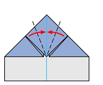 Make a mountain fold at the top corner section along line A. Unfold both flaps.